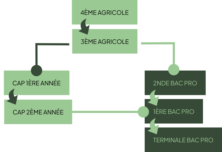 Ces diplômes se préparent en 2 ans après la 3e. Ils mêlent enseignements généraux (français, maths …), enseignements professionnels et stages destinés à préparer à différents métiers dans des spécialités agricoles.